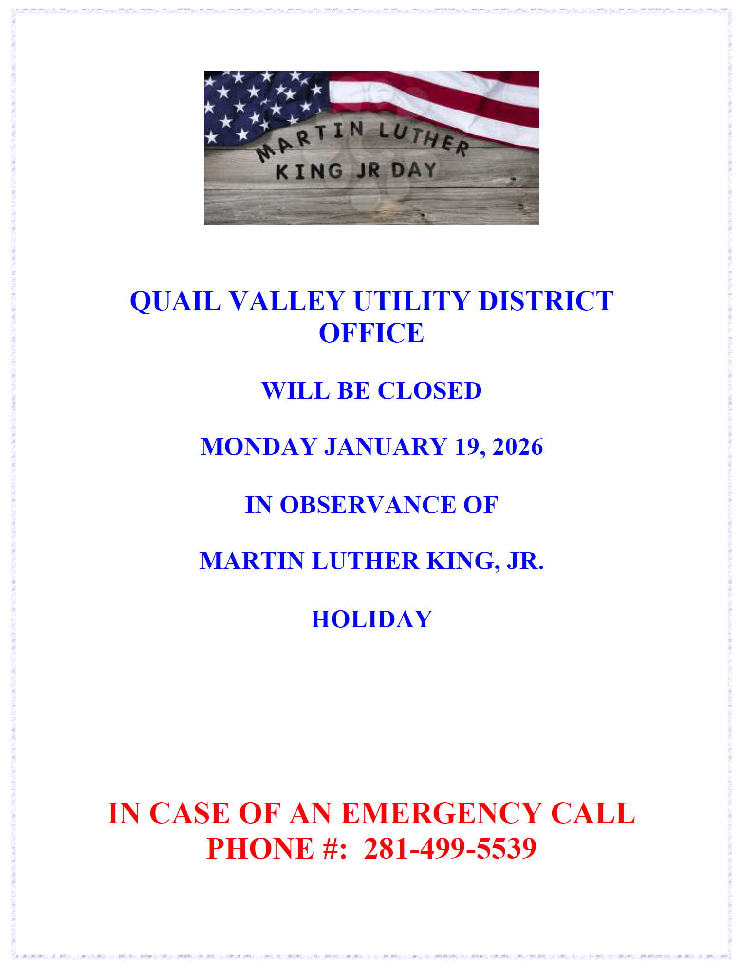 The Board of Directors of Quail Valley Utility District approved water and sewer rate increase to be effective July 1, 2025. The district has not increased water and sewer rates since 2018.
